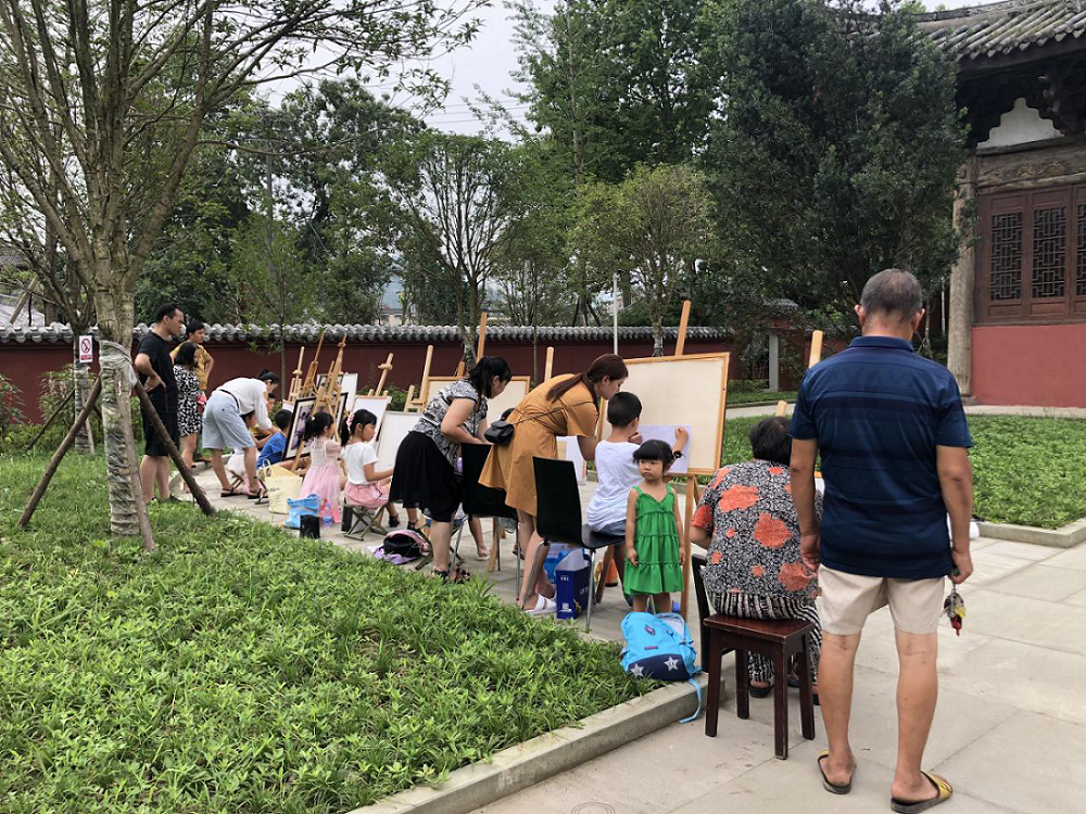 8月5日,开善寺博物馆和县文化馆联合开展“荥经文化大讲堂”之我画“国宝”开善寺的写生活动,25名萌娃走进开善寺博物馆,与历史悠久的文物进行一场笔尖下的邂逅,超越时空的对话。