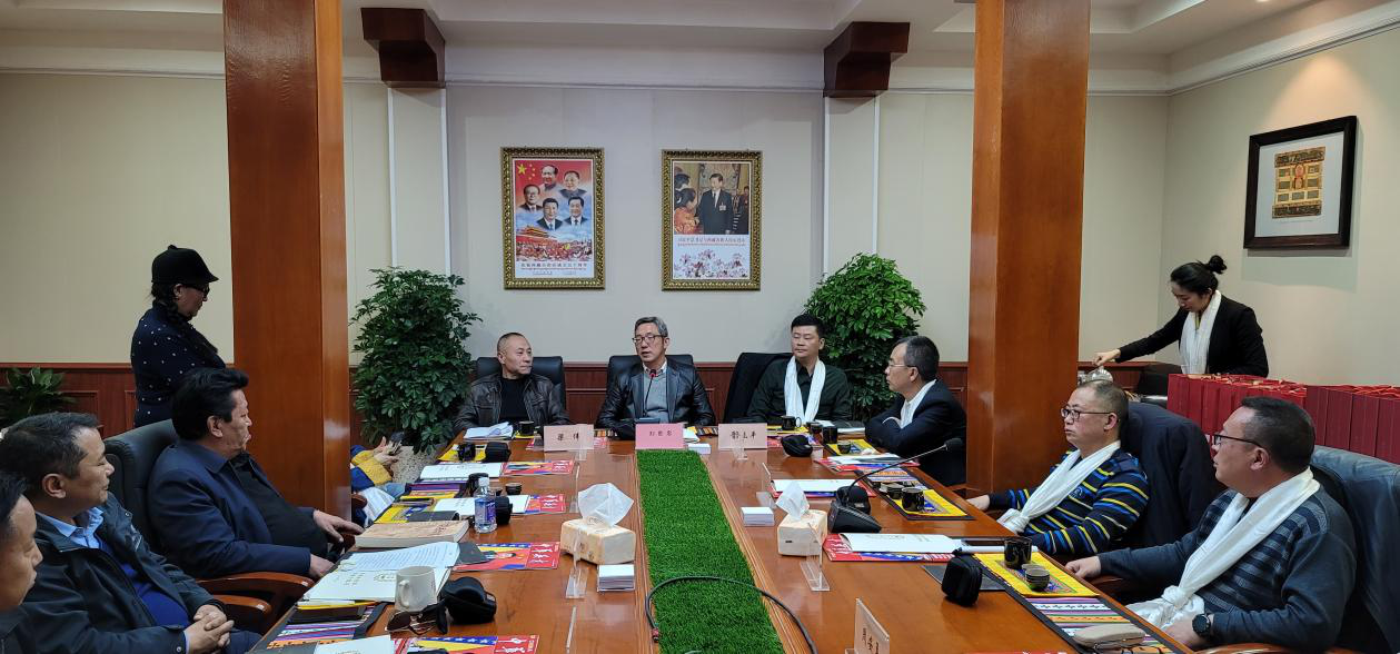 值此中国共产党成立100周年、西藏和平解放70周年之际,自治区文物局喜闻荥经县政府及藏茶“仁真杜吉”第15代传承人万姜红女士一行到布达拉宫寻根交流及洽谈合作,会议在布达拉宫“雪宫”召开。自治区参会人员有:西藏自治区文物局党组副书记、文物局局长刘世忠、布达拉宫管理处党委书记格桑顿珠、布达拉宫管理处处长觉单、布达拉宫管理处副处长贡嘎扎西等。西藏自治区文物局局长刘世忠介绍:“千年茶马古道,以茶为谋,见证了藏汉民族交流交往交融,血浓于水的珍贵历史。自治区文物部门要从挖掘、整理、宣传西藏自古以来各民族交往交流交融的历史、促进各民族交往交流交融、铸牢中华民族共同体意识出发,积极开展茶马古道相关工作”。