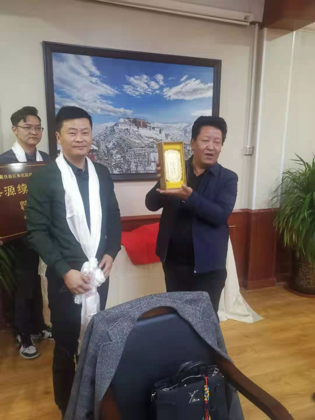 近日,由晋兆平副县长带队,县政协副主席王磊、县农业农村发展中心副主任赵志勇、县博物馆馆长高俊刚、《荥经文史-茶马古道》主编周安勇以及姜氏古茶“仁真杜吉”传承人、四川姜氏茶业有限公司董事长、北京雅安商会会长万姜红女士一行10人,到达布达拉宫探访典藏于布宫百年的藏茶“仁真杜吉”。